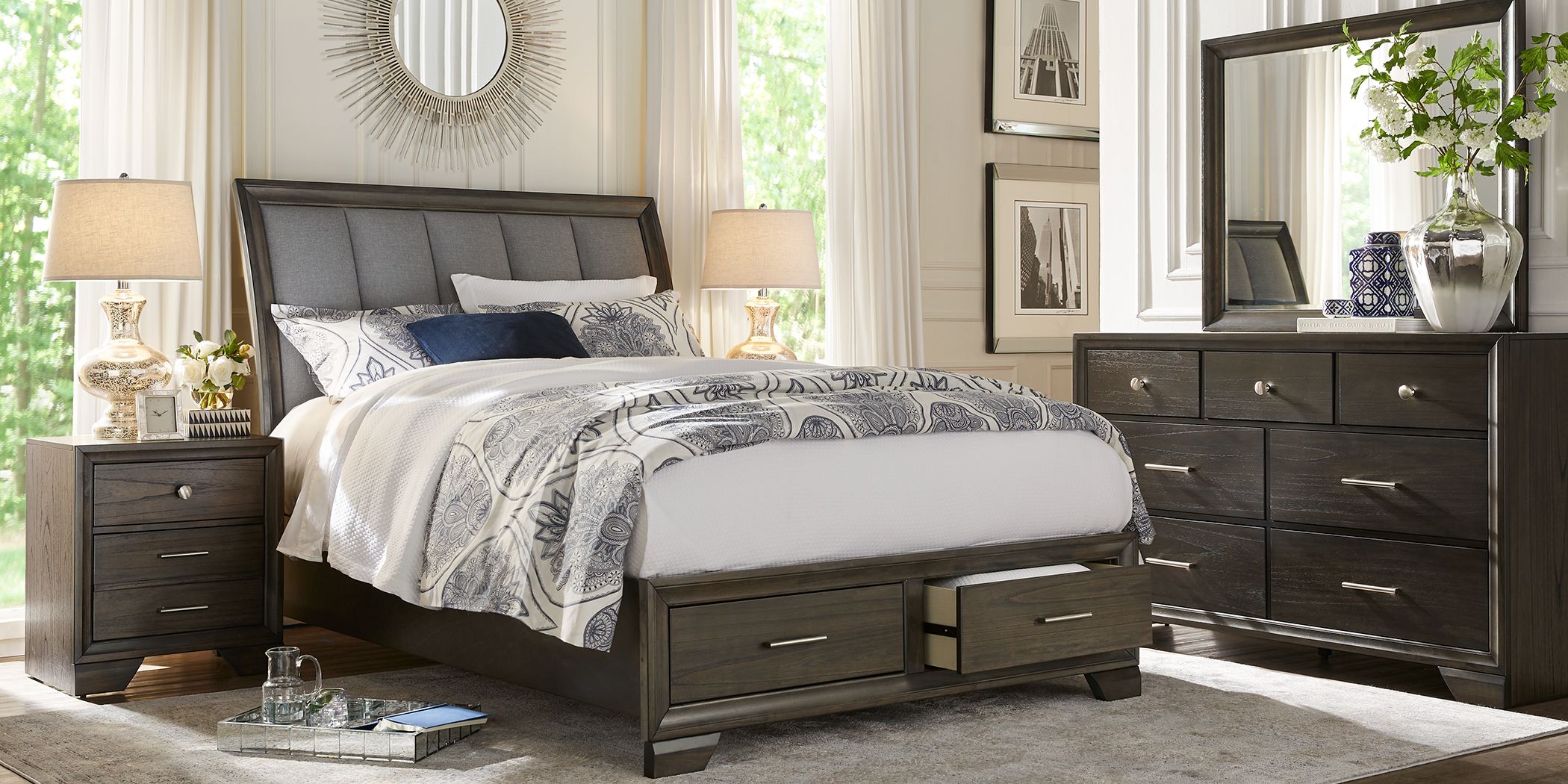 At the roomplace, your local bedroom furniture store serving the chicago area, we have a wide selection of king bedroom sets you can pick from to make your nights more comfortable. Start with a bed style and let the rest of the décor follow or fall in love with a single piece and synchronize accordingly. Huge variety of designs, colors and styles in matching 7 pc sets for a queen size bedroom. The smith couple 3 piece set, upholstered king, queen or full size bedroom with headboard, frame, & 2 nightstands all included (full) $309.00. A king bedroom set is the perfect addition to any room filling a space with classic luxurious style.